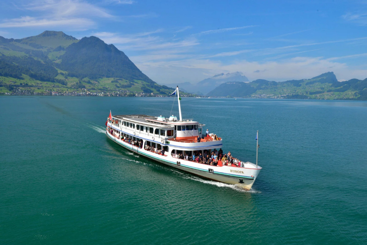 特別安排 盧森湖 遊船,湖水清澈如鏡,群山環抱、景色層次分明。航行途中可欣賞湖畔小鎮與阿爾卑斯山倒影,感受瑞士最經典的湖光山色,浪漫又療癒,是旅程中最放鬆的片刻之一。