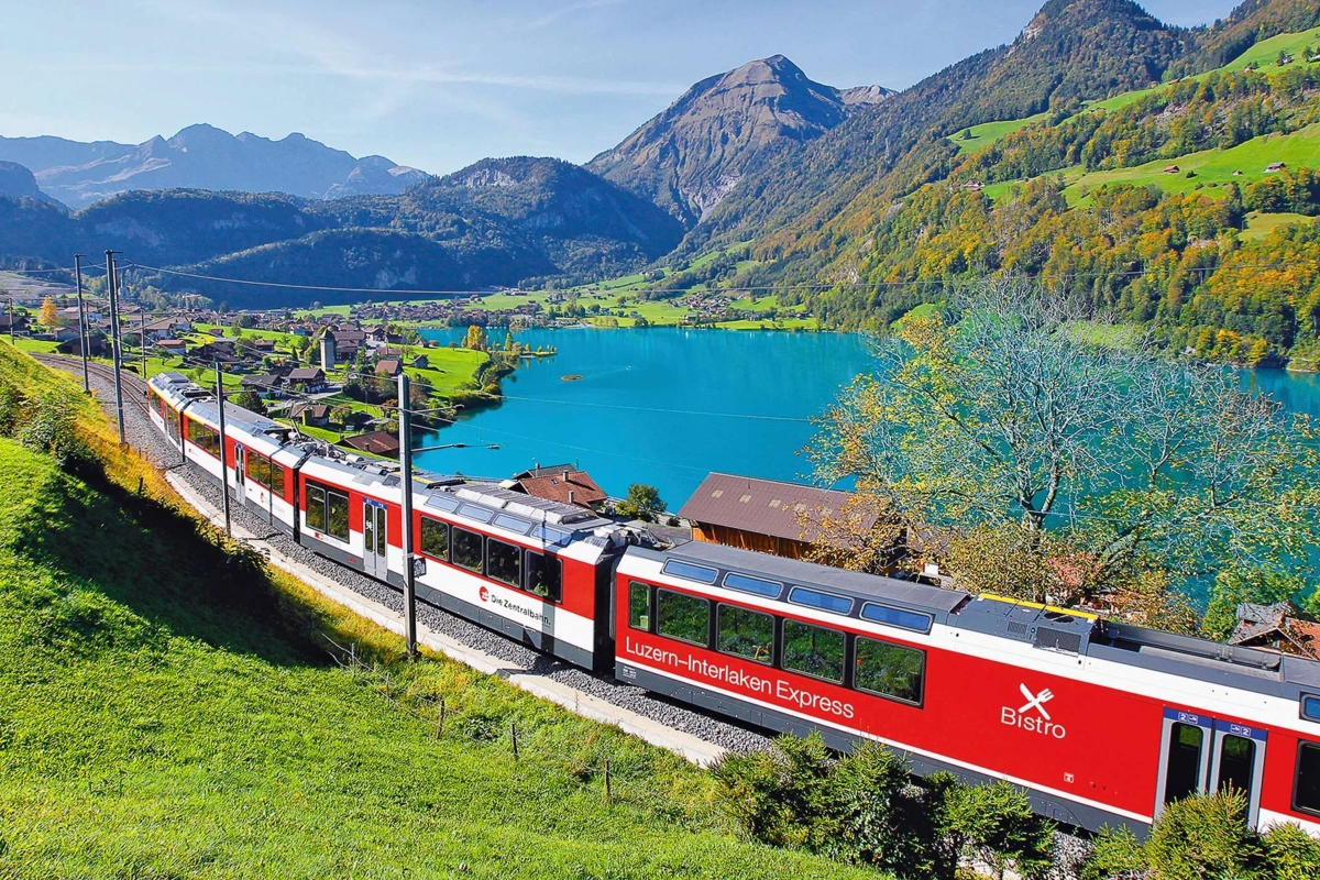 安排搭乘 GoldenPass Line 景觀路線(精選區間列車),沿途湖泊、草原與山谷交織,宛如行進中的風景明信片,是瑞士最經典的鐵道體驗之一。