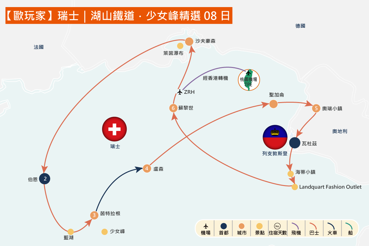 【歐玩家】瑞士|湖山鐵道.少女峰精選8日 |
