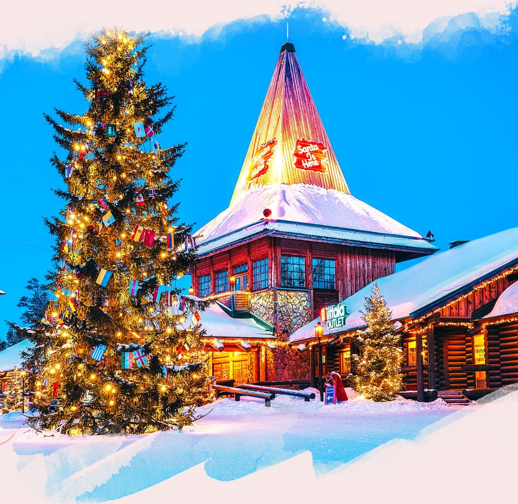 相傳北緯66.5度極圈線後就是聖誕老人的國度,童年美好回憶中的聖誕老公公就住在聖誕老人村,村莊洋溢歡笑熱鬧的節慶氛圍,您可以在聖誕老人辦公室挑選一張明信片,到聖誕專屬郵局蓋上獨一無二的郵戳,寄給親人、情人和朋友。此外還可預約聖誕卡片,聖誕節來臨時,就會收到一張聖誕老人村送來的溫馨祝福。聖誕老人村內的北極圈標線,緯度為北緯66度33分,遊客到此必定跨著刻劃在地上的緯線拍照留念,並可獲得一張特地為您製做的跨越北極圈證書。