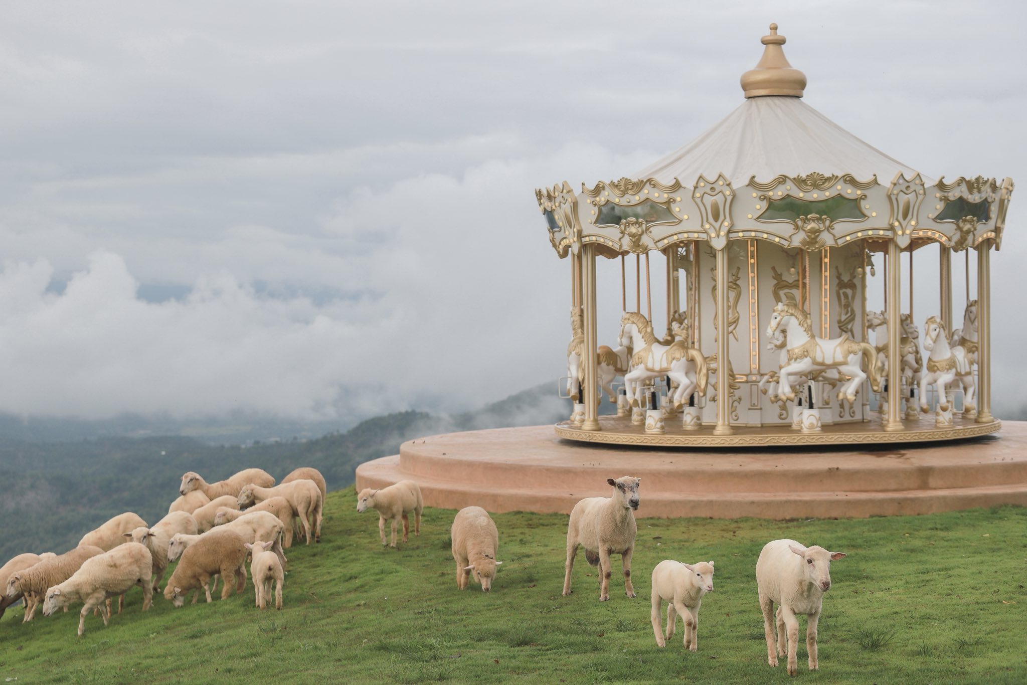 位於清萊山間的AbonzoYamaMitsu綿羊農場咖啡店,是一處融合田園風光、動物互動與咖啡體驗的特色景點。踏入農場,綿羊悠閒漫步於綠意草地,與四周的山巒和藍天相映成趣,宛如置身於自然畫卷之中。遊客可近距離觀察、餵食綿羊,享受與動物同框的樂趣,也能捕捉許多可愛畫面,是家庭與文青旅人皆愛的打卡地點。