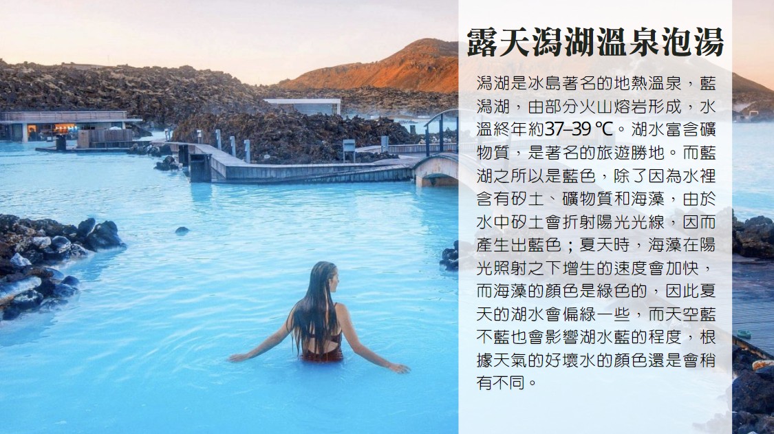 今早前往參觀★火山岩漿隧道(Raufarhólshellir Lava Tunnel)是冰島最長的熔岩隧道之一,因為岩漿的高溫,這個隧道的內部被燒出五彩的顏色 ,而且地下通道洞內完全保存了最初形成的樣子,讓您沉浸在冰島景觀的壯麗中。通過一扇小門之後宛如“愛麗絲夢遊仙境”中的世界。您將探索地下自然奇觀,沿著精心建造的步道,欣賞劇烈的熔岩雕塑的洞穴。隨著導遊的解說,您可以欣賞岩石形狀的變化顏色,而在岩石流浪的道路上行走。不知道為什麼這麼個神秘美麗的地下世界居然很少被人知曉。接著帶您前往露天天然溫泉★露天溫泉,藍湖溫泉(BLUE LAGOON)或天空之湖 (Sky LAGOON)或秘密溫泉(SECRET LAGOON),溫泉湖的形成非常特別,海水經過地下高熱火山融岩層而吸收熱量來發電,水中含化學與礦物結晶,被冰島醫學家證明可舒解精壓力與某種療效。泉水呈淡藍色成的巨大溫泉浴場,面積有四個足球場大,該湖的溫泉含有大量的礦物質,具有美容與消除疲勞的功效,可以盡情享受露天洗溫泉之樂! 【今天請務必攜帶泳衣ㄡ】!