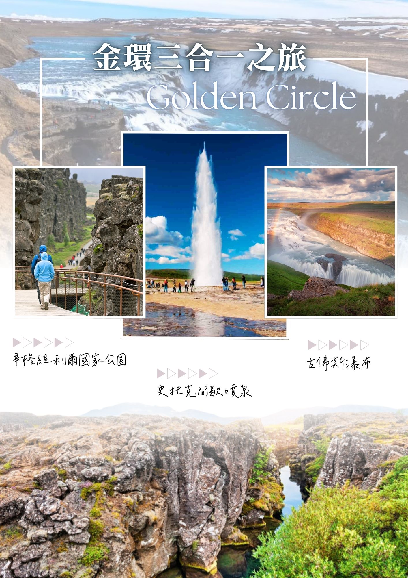 上午展開最受歡迎的金環風景線之旅,你可欣賞冰島奇特的地形-冰火交融的島國,全島約有200座火山,是世界上火山活動最頻繁的區域之一,且以擁有巨大冰河著稱,景色讓您心曠神怡,延途欣賞火山地形、湖泊、草原等特殊景觀。首先安排市場獨家行程冰島必訪★地熱麵包房體驗在黃金圈的靜謐湖畔,冰島人世代傳承的黑麥麵包,揉好麵團後,不是放進烤箱,而是埋入溫暖的火山沙或地熱地底,利用地下「地熱能」悶烤約 24 小時。麵團埋入溫暖的地底,掀開的瞬間,熱氣與香味交織成最純粹的大自然饋贈。品嚐剛出土的「地熱黑麥麵包」,柔軟、濕潤、帶著天然焦糖香,搭上冰島奶油,一口便愛上。接著來到★辛格維利爾國家公園(Thingvellir National Park)公元 930 年,世界上最早的國會會議在今天辛格維利爾國家公園所在的地方召開,也是歐美板塊的交界。十八世紀時,因板塊運動造成的火山和地震而被摧毀,在此您可見到仍持續擴大中的歐美板塊裂隙;接著前往◎史托克間歇噴泉 (Strokkur),此奇觀主要是因為冰島多火山,故產生的地熱造就其自然的間歇噴泉。然而,儘管全球最著名間歇泉之一的◎蓋錫爾間歇噴泉(Geysir)目前已停止噴發,但在此噴泉區,仍有多個噴泉在此活躍。其中史托克間歇噴泉,於每十分鐘左右噴發一次,在噴發之前,沸騰的水會先噴成碗狀,接著中間形成白色水柱噴往空中約 30 公尺高處,而漸平息,此過程並會周而復始的噴發,十分壯觀。◎古佛斯瀑布(Gullfoss) ,她是冰島第二大瀑布,曾被CNN旅遊評選為「全球十大最美麗瀑布」 之一的古佛斯瀑布, 又稱「黃金瀑布」,它不只是冰島最著名的大瀑布,其兩層不同高度落差、不同流向的瀑布,奔流而下的大瀑布,既壯觀又氣勢磅礡。若有機會遇到彩虹,那麼夢幻景緻將令人更加驚嘆連連。略為靠近瀑布旁,就能感受到他的磅礡氣勢。