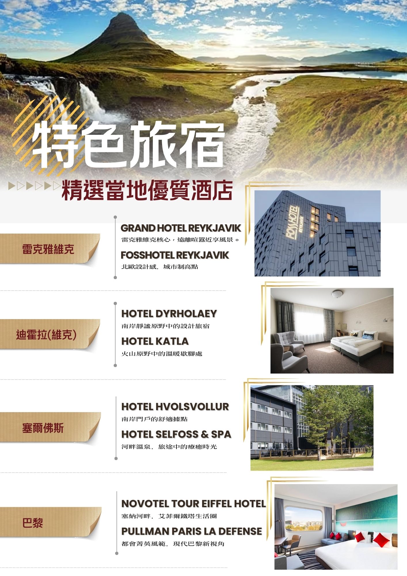 住宿:HOTEL DYRHOLAEY或HOTEL KATLA或ICELANDAIR HOTEL VIK或同級