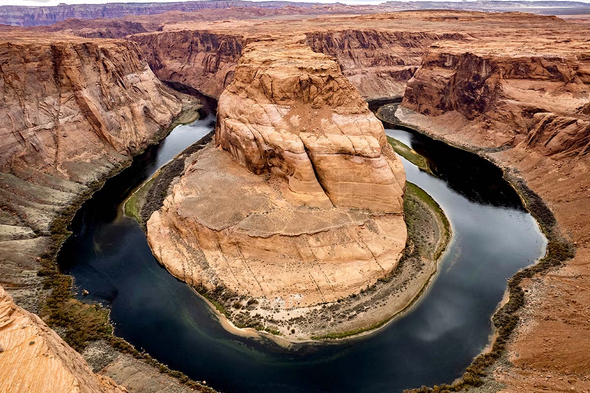 由上往下俯瞰,將發現科羅拉多河流經270度巨大的馬蹄型彎道,此景觀是保證震憾人心。