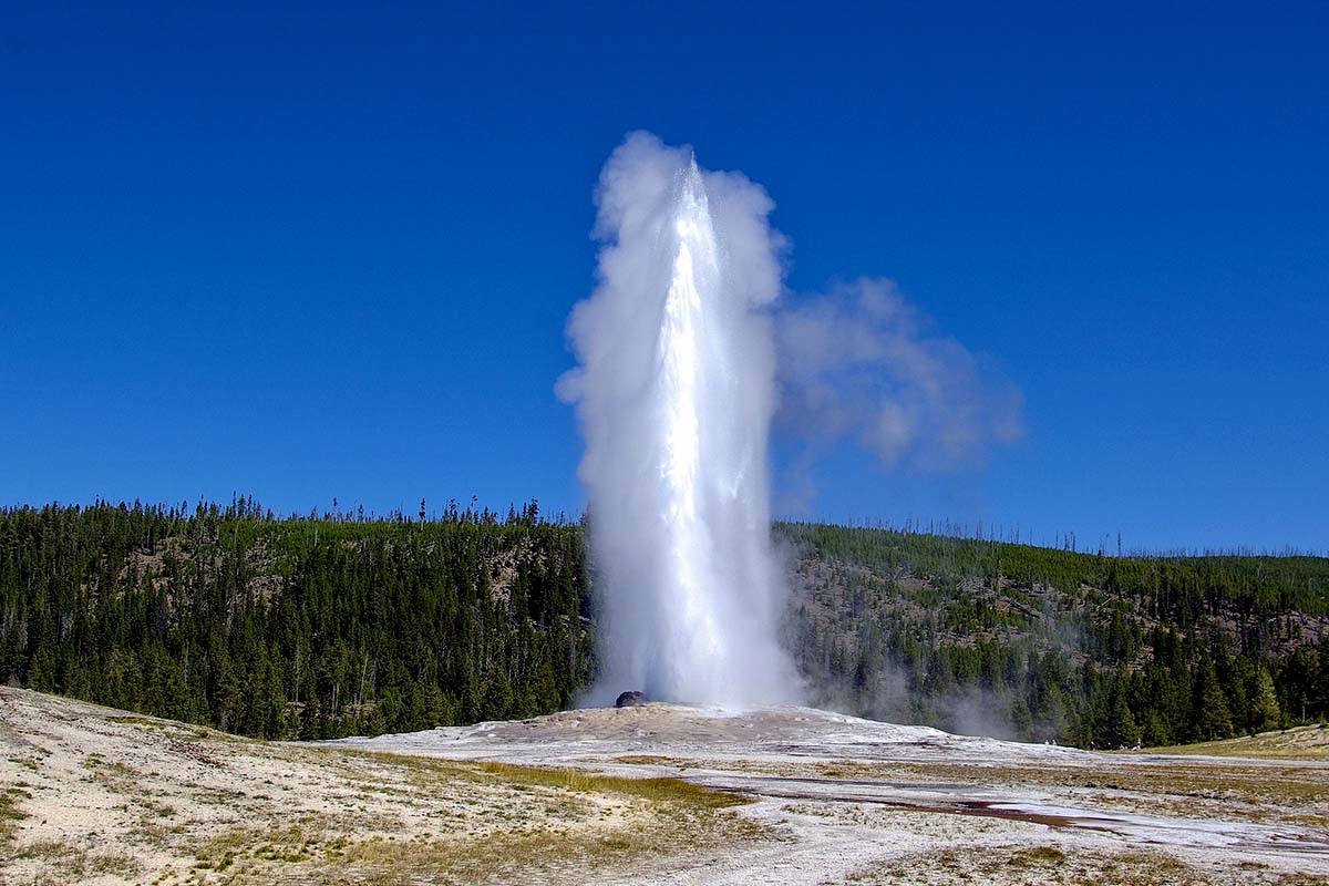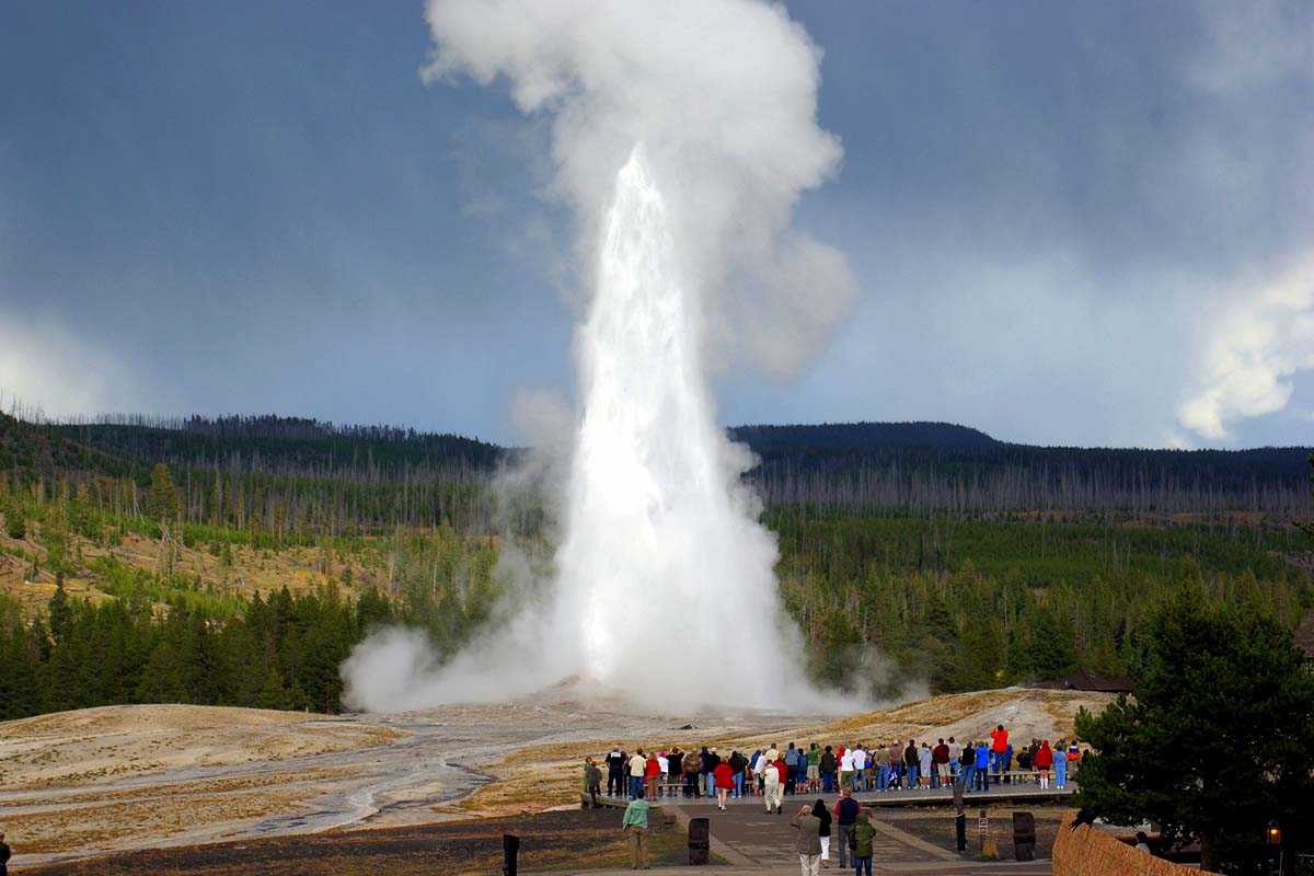 不讓遊客失望,規律噴發的老忠實間歇泉