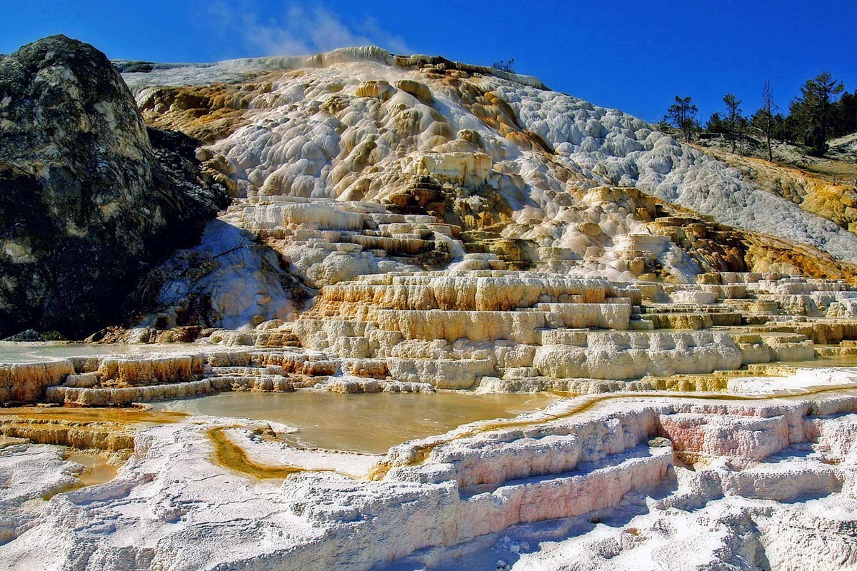 因巨⼤的⽯灰岩台階⽽得名的⻑⽑象溫泉