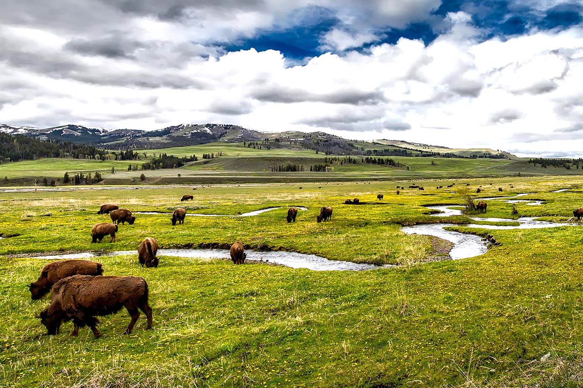 這裡擁有世界公認最美麗的瀑布景觀。由於特殊地形造就了109英呎的上瀑布與308英呎下瀑布的壯闊奇景。在黃石公園內早晨及黃昏較容易看見野生動物們進食。運氣好的話還能遇到成群的美洲水牛或麋鹿遷徙,結隊橫越馬路有趣的"塞車"景象。