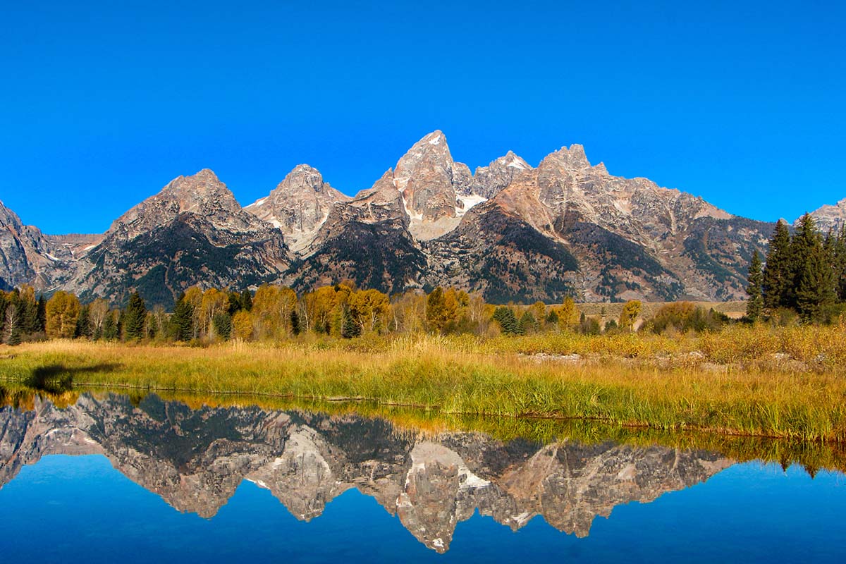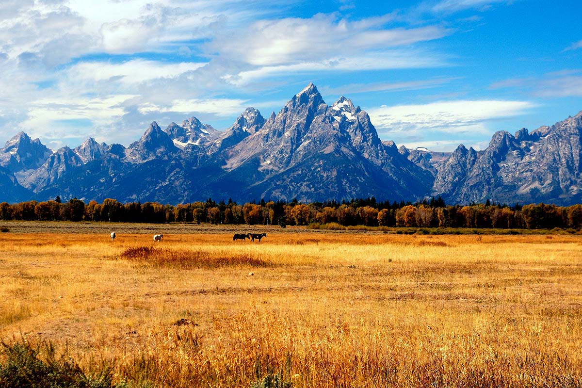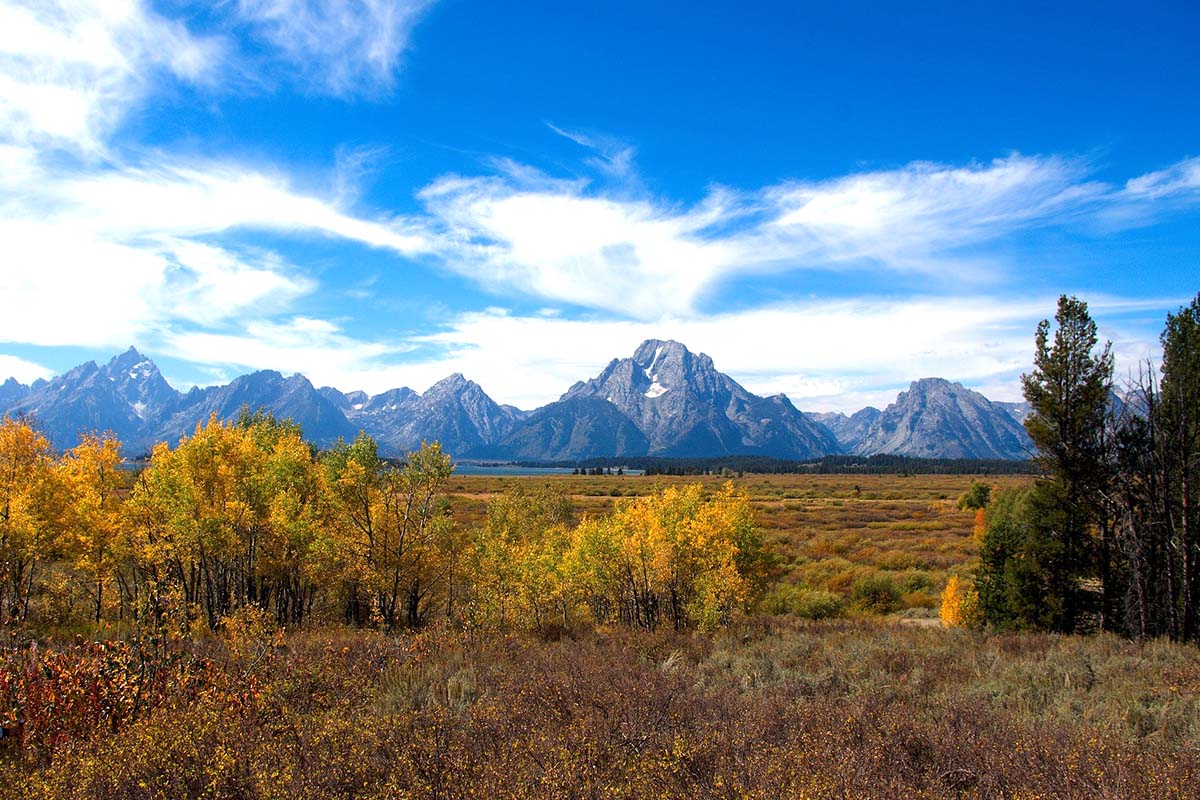 連綿的13座山峰如影隨形,與冰河穿鑿而成25公里長的傑克森湖纏綿成一幅幅詩一般的景緻;大堤頓國家公園(GRAND TETON NATIONAL PARK),於1929年設立,此國家公園以翠綠的高山,清澈的湖泊著名,尤其林象豐美,花卉種類特別多,以藍色的勿忘我為其代表。