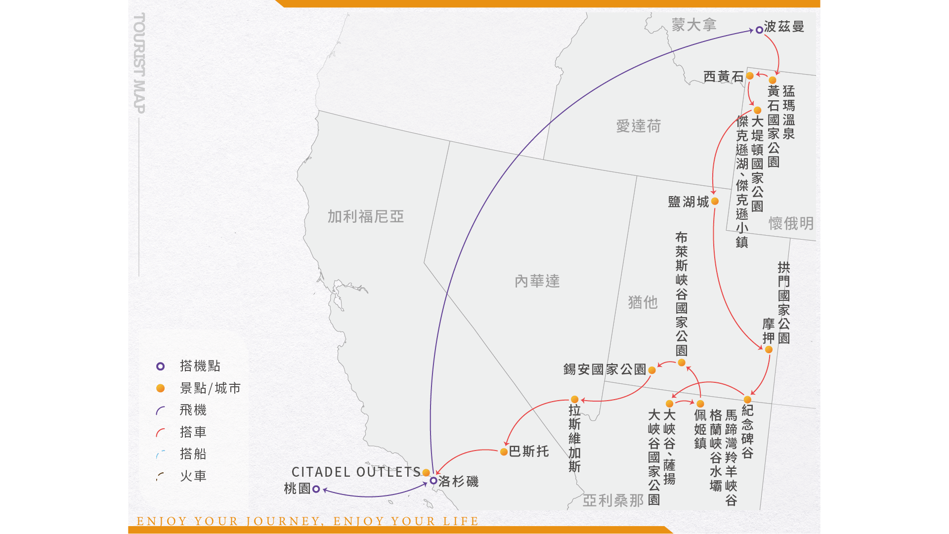 註:黃石公園部份景點會依當地氣候因素決定是否開放,若遇道路封閉而無法前往,敬請見諒!