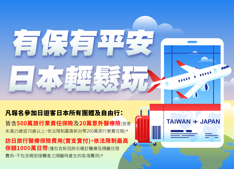 【日本入境及防疫要求】 1)日本國許可或認可之新冠疫苗,以及入境許可或免隔離許可,依日本國公告為主。 2)如可成行,出發前,消費者應自行檢閱並符合日本政府許可或認可疫苗完整接種紀錄,並依兩國政府規定,持疫苗施打證明文件(黃卡),及自行檢查、準備入出境所需相關旅遊文件,如因相關證件不足致無法出發時,恕無法退費。 成團人數必須達到16人以上,方可成團。 此團體必須團進團出,不可延回 包機起降參考時間,會因日本政府實際核准時間而有差異,故包機時間及降落城市以航空公司為最後確認。 若因航空公司或不可抗力因素,而變動包機航班時間及降落城市,造成團體行程變更或增加餐食或減少餐食, 本公司不另行加價,亦不減價,敬請見諒。