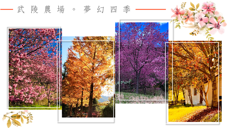 武陵農場位於臺中市北橫宜蘭支線(台7甲線)53公里處,民國52(西元1963)年將原屬榮民農墾處的武陵墾區正式改名為武陵農場,農場內阡陌縱橫,種植高山蔬果與茶葉(青心烏龍),四季風情不同;春天綻放梅花、櫻花、桃花、梨花、蘋果花與杜鵑花,夏天與秋天則是水蜜桃、梨子與蘋果的採收期,到了冬天,幸運的話,可嚐到雪的滋味。高約50公尺的桃山瀑布又名煙聲瀑布,號稱武陵勝景,可自武陵青年活動中心後側之水泥路,經武陵吊橋而到達,站在桃山山腰上遠眺山谷,武陵農場風光一覽無遺。此外,若由品田山經由北陵脈可到雪山。在群山屏障下,夏季涼爽冬不酷寒,是個四季宜人的渡假勝地。
